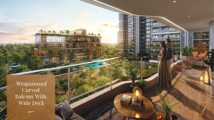 - Wraparound curved balconies and sunlit interiors in every apartment